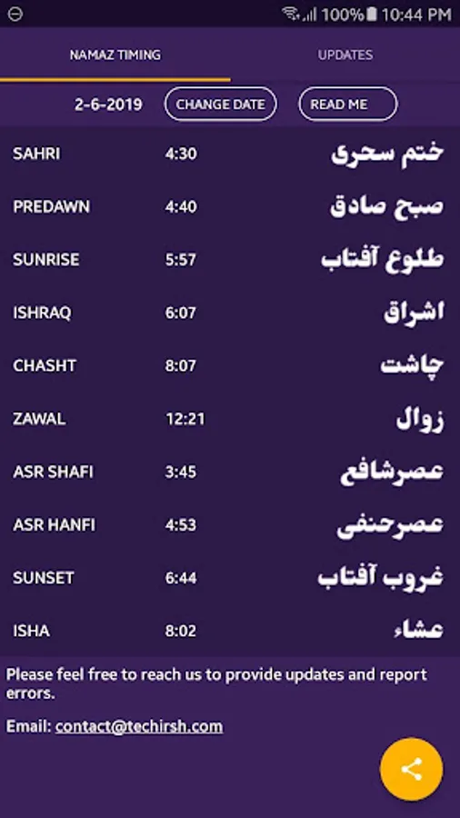 You can find the timings of Sahri, Predawn, Sunrise, Ishraq, Chasht, Zawal, Asr Shafi, Asr Hanfi, Sunset and Isha.