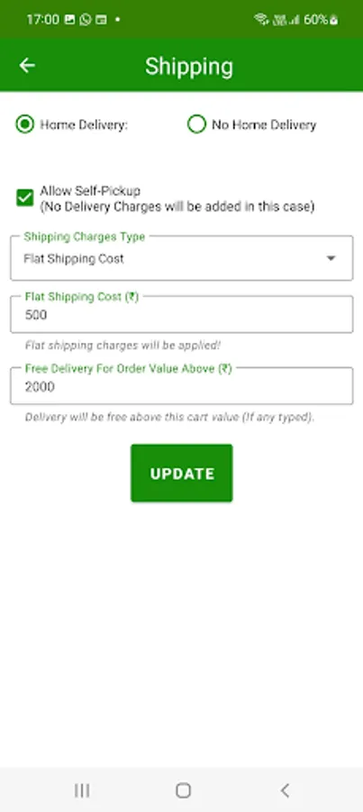 > Allow users: COD (cash on delivery) or Online payment or both.