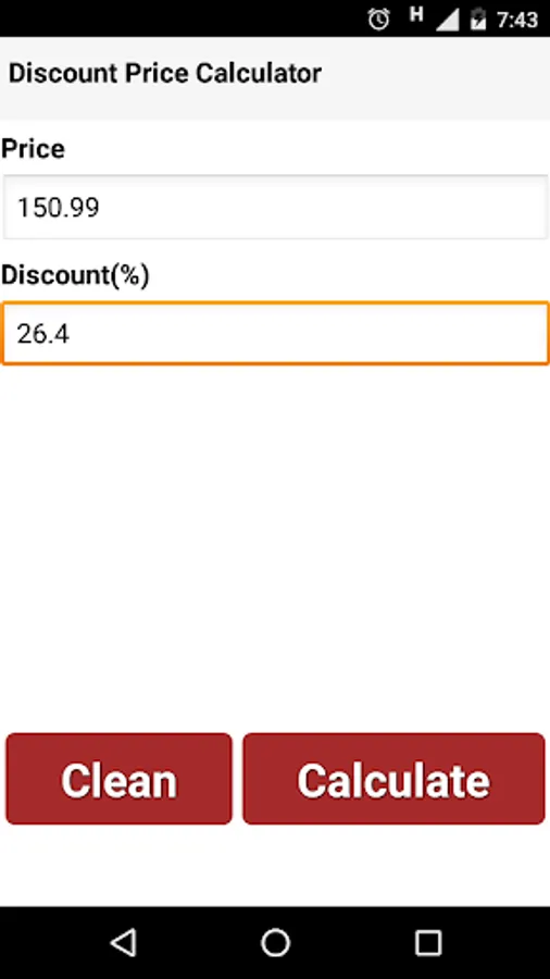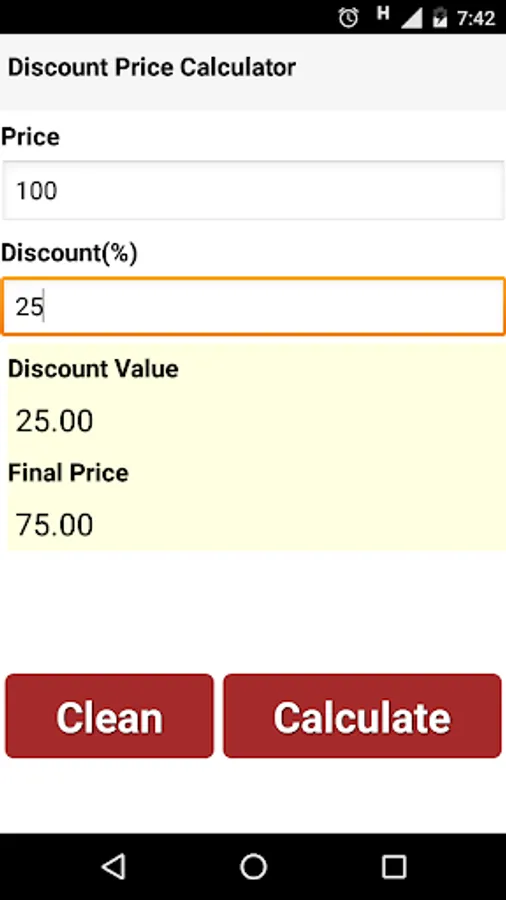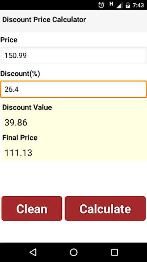 With a simple and easy-to-use interface, the Discount Calculator provides the information regarding the final price and discount value applied to the price.