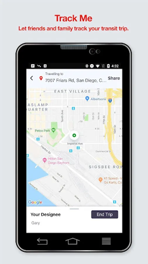 Track Me feature to send your trip to designated contacts