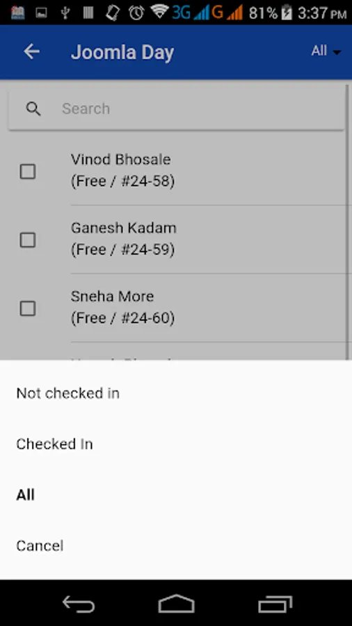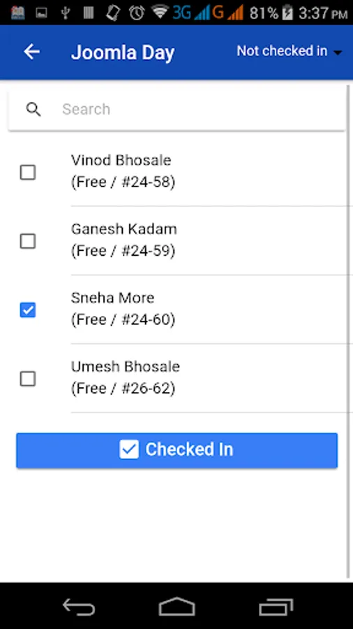 - Manually Look up and check in attendees off a list by using search feature functionality.