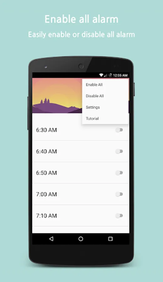 Easily enable or disable all alarm.