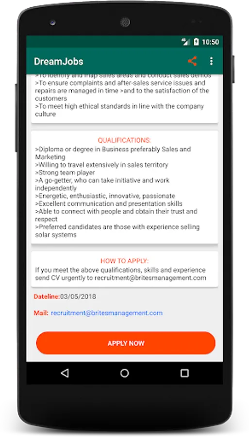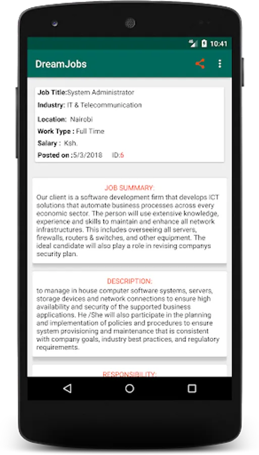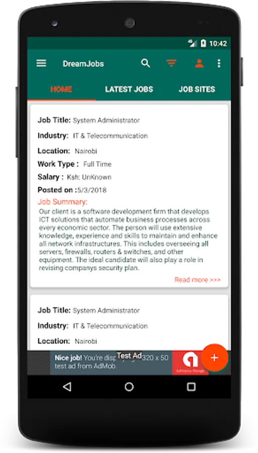 DreamJobs is an android job portal app easy to use ,build to bring job adverts near users who are looking fo a job , The App functionality is very simple as Jobs are categorizes in groups i.e sale, Information Technology e.t.c