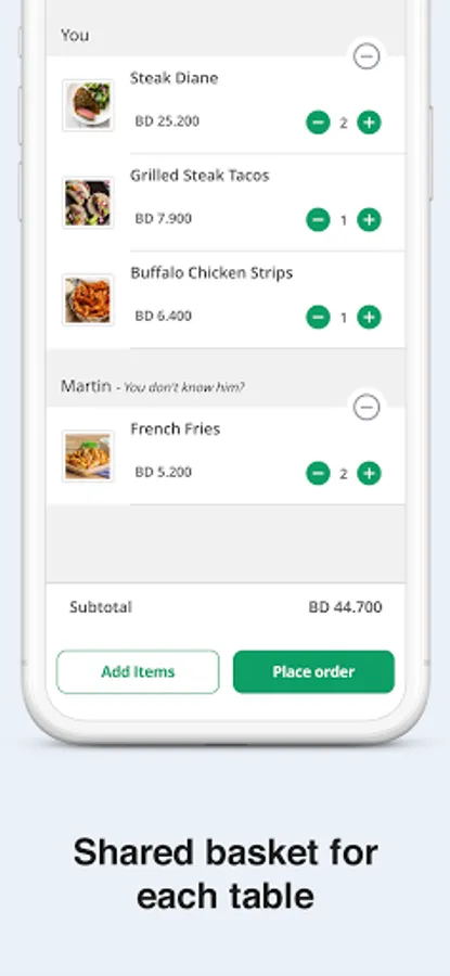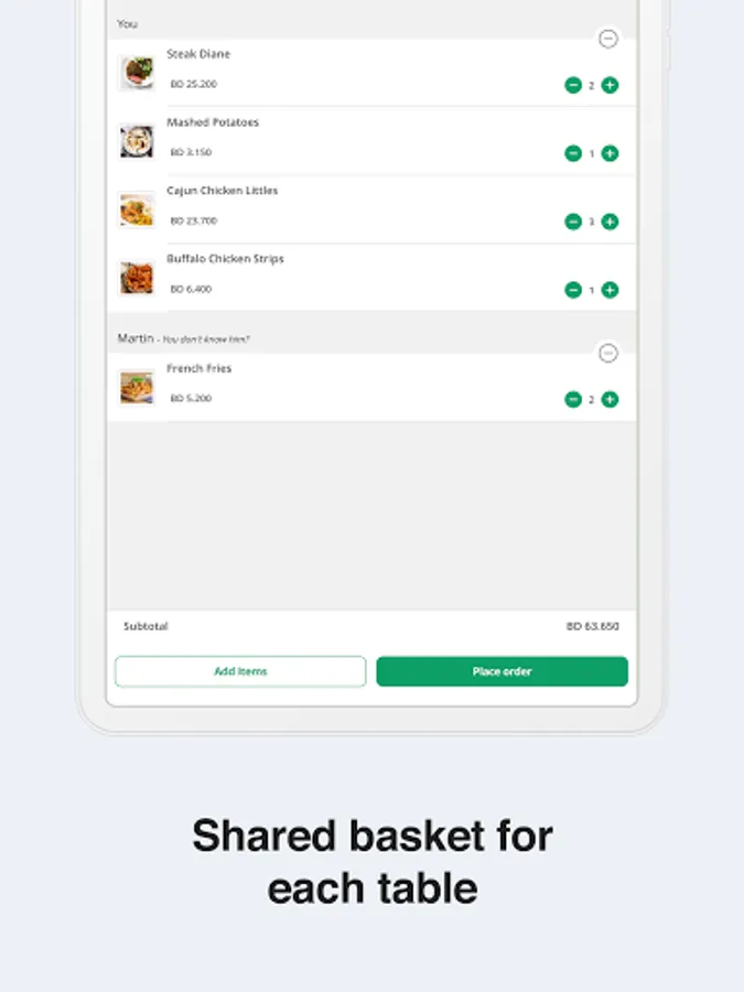 - Identify your tables by QR code and let your customers order through an online shared basket so that they can see each other’s placed orders.