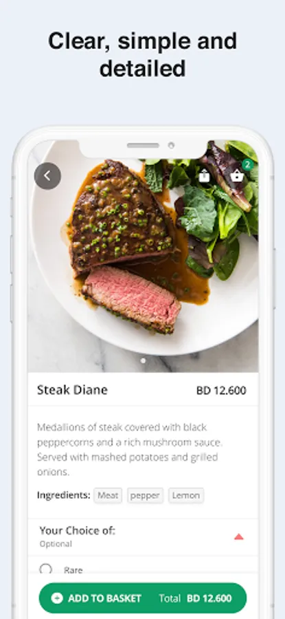 - Display Item details, including item photos, ingredients, descriptions and prices.