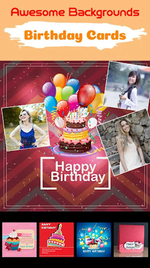 Happy Birthday Card Maker with Photo android app allows you to create beautiful birthday greeting cards by placing photos in birthday photo frames and by writing Name on Card.