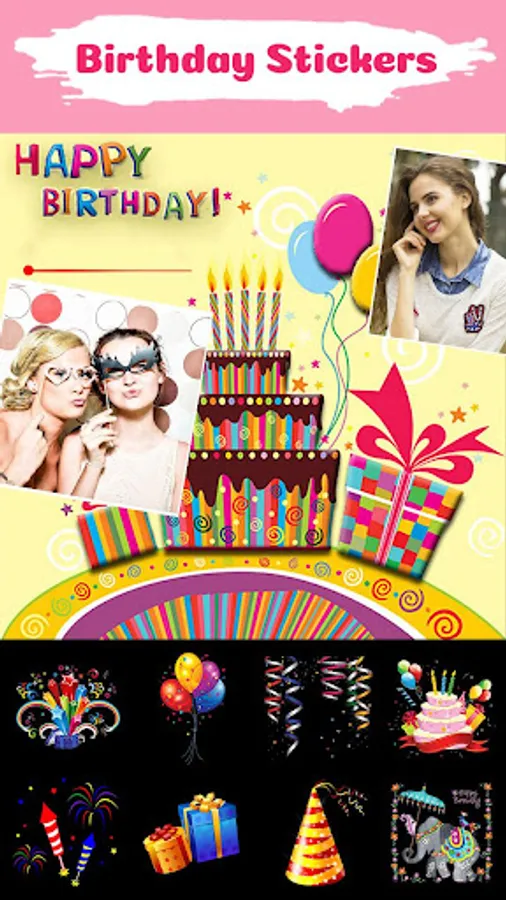 create beautiful and creative greeting cards by adding photo in Birthday frames and also add your custom text and birthday stickers.