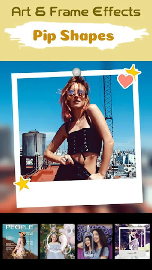This is a useful and creative photo frames app used to frame your photos in Photo or photo collage mode. PIP Camera Photo Art lets you edit photos, apply photo effects, and add frames, graphics, and text.