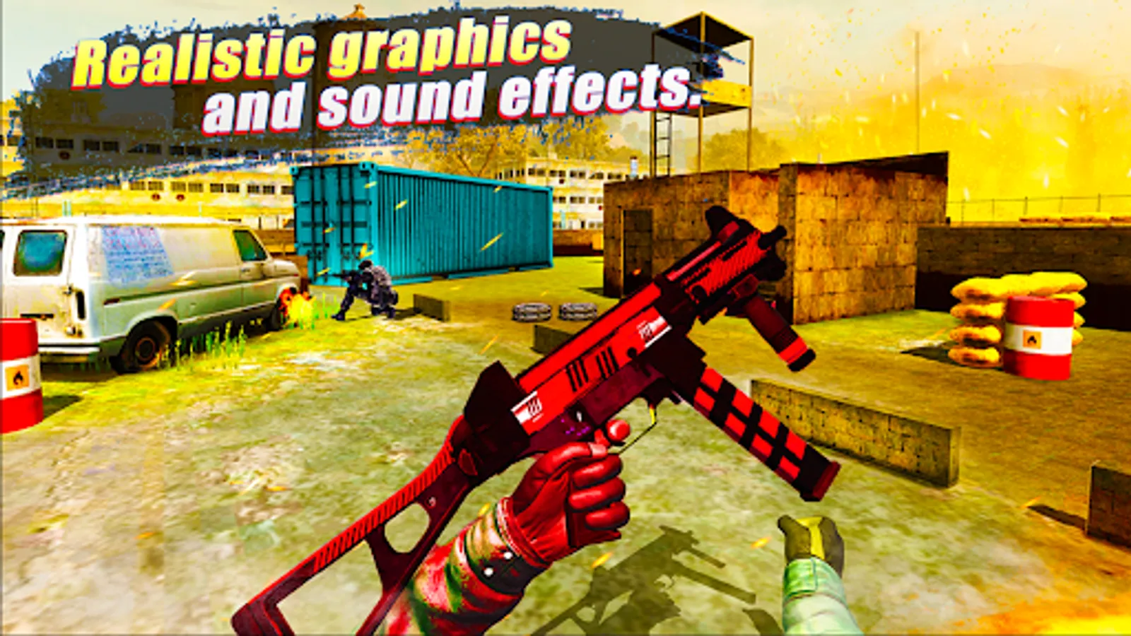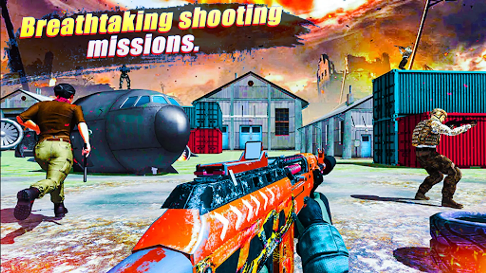 With Highly Equipped Guns, Action Packed Missions, Get Ready and jump into Battlefield and start eliminating Terrorist Enemies. The area is under attack and occupied by extremists, you are the Frontline Soldier of your countryβs defense. Eliminate Terrorist Force and clear the army base to secure the country. Become the Capitan of Reinforcement and take the battle to the enemy. Modern Comando Shooting game with challenging mission in different settings really tests your PvP shooting skills in the Multiplayer Third Person Shooter Game.