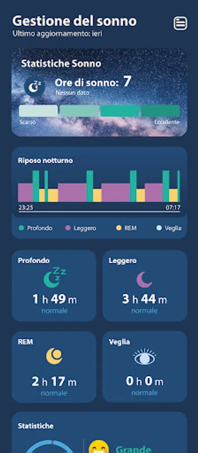 (1) Sleep monitor: provides information on sleep quality (deep and light sleep and REM phase), heart rate, body temperature and blood oxygenation. It provides detailed statistics and analysis on your sleep quality.