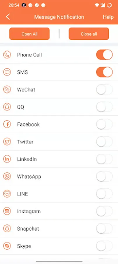 TechROCKS supports multiple types notification push to your device like SMS, Facebook, Twitter, WhatsApp, LINE, Skype, Instagram, Snapchat and Wechat.