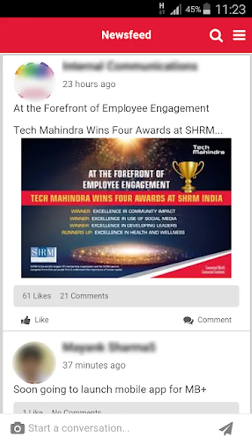 NeMo is an Enterprise Social Networking app built over the Social & Collaboration framework of Sharepoint 2013. This app enables formerly siloed employees of TechMahindra to interact with one another based on shared interest rather than just because they work in the same department or on the same project. It is designed such that it mimics popular social networking sites giving a simple, easy-to-use, fast and light-weight mobile interface.