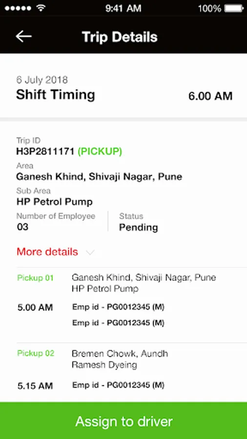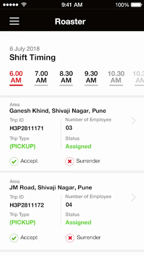 This app allows the Vendor to view the daily roaster and then assign the trip to driver.