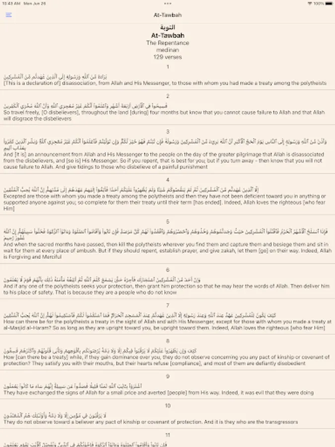 The explanation of meanings of the Noble Qur'an in English and Arabic languages. The Noble Qur’an is the speech of Allah Almighty, the lasting miracle,