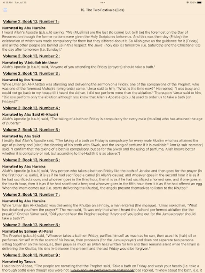 Sahih al-Bukhari is a collection of hadith compiled by Imam Muhammad al-Bukhari (d. 256 AH/870 AD) (rahimahullah). His collection is recognized by the overwhelming majority of the Muslim world to be the most authentic collection of reports of the Sunnah of the Prophet Muhammad (ﷺ). It contains over 7500 hadith (with repetitions) in 97 books.