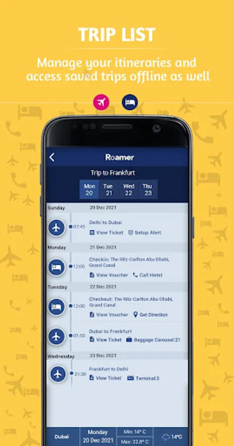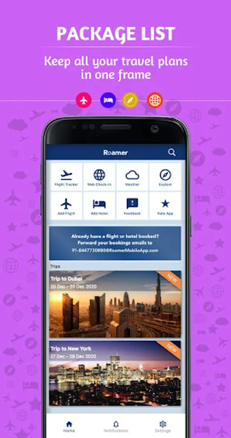 Roamer will notify information related to the trip and updates you with any Flight delays, cancellations etc. This helps you to plan better well in advance.