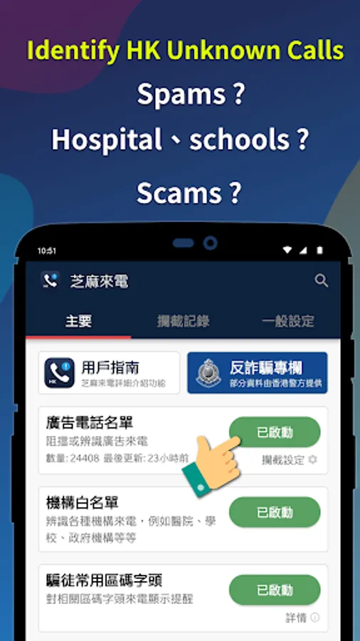 Designed for Hong Kong users, Jima Caller Id cope with the spam calls problem : there are too many spam calls, among those some are even scams.