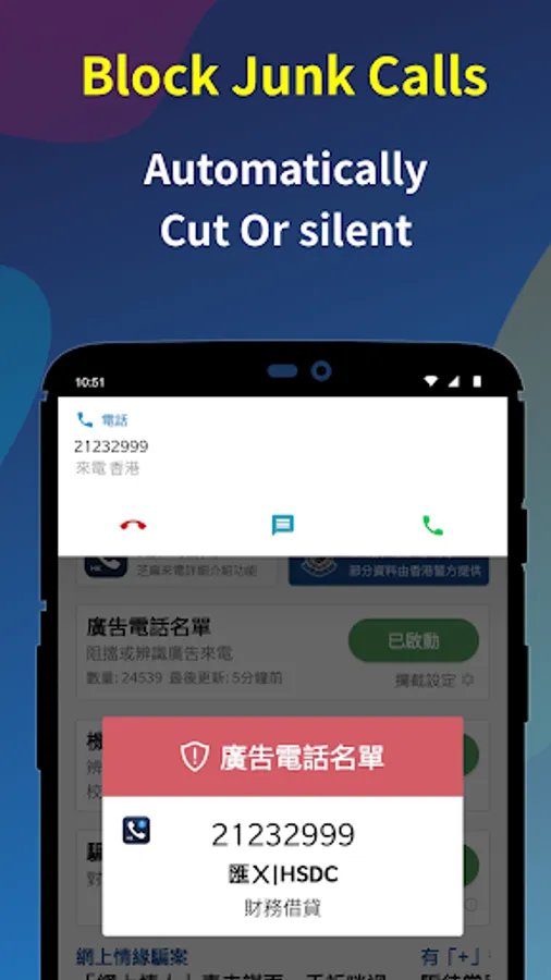 【 Query Spam Call Databases 】 More than 10K records, adopted hkjunkcall.com database, spam calls are collected daily and updating the database. You could offline query whether a call is a spam call
