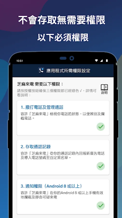 【 Customisation 】Actions to different category of spam calls could be set to "Block" or "Identify" according to your needs.