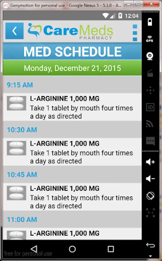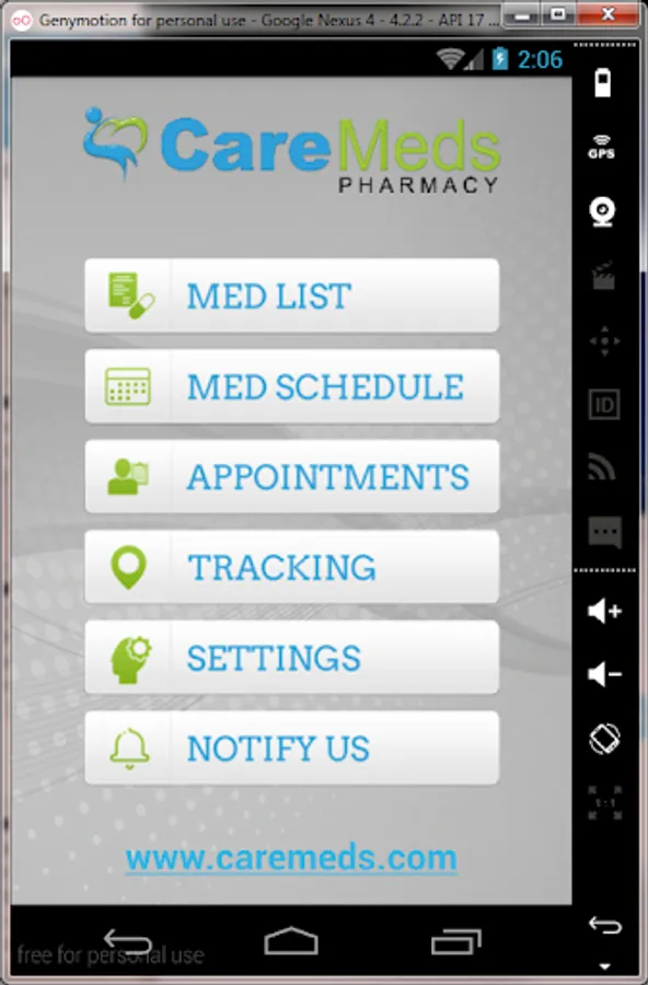 The CareApp application assists people in tracking their medications and the schedules on which they are supposed to take them. As an Internet-connected application, the application on the user's phone is updated whenever a new med is added or a schedule is changed by their care provider. The user receives a reminder alarm when a medication is scheduled to be taken. The application also allows appointments to be entered so that reminder alarms can be sounded for those as well. Additionally, the application allows the organization of MedBuddies to help keep the user on their prescribed medications.
