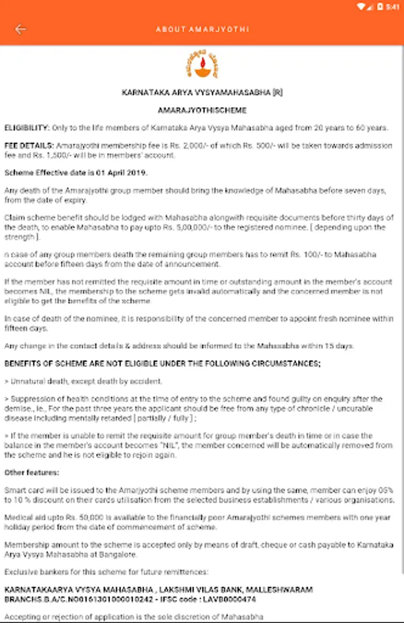 Amarajyothi is a scheme launched by Arya Vysya Mahasabha(R), Bangalore Karnataka, for its members. This App is for District representatives within Karnataka to help process the Amarajyothi Scheme.