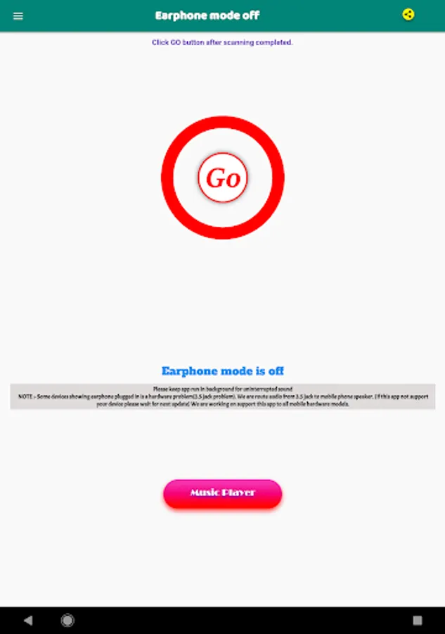Some mobiles shows earphone's plugged in but we cannot connect earphone to our device. this app solution for this problem.