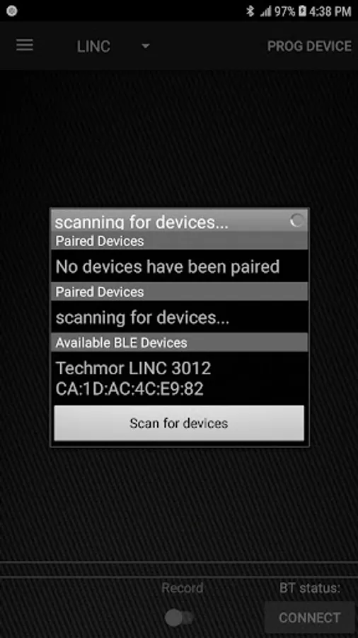 The LINC Sensors App reads from Techmor LINC Bluetooth sensors. The sensor values show up live, can be recorded, and the log files can be plotted. The app shows standard values from the sensors and also allows custom naming and calibration, as well as sharing the text files to emails and cloud services. The LINC Sensors app is the easiest way to take a measurement!