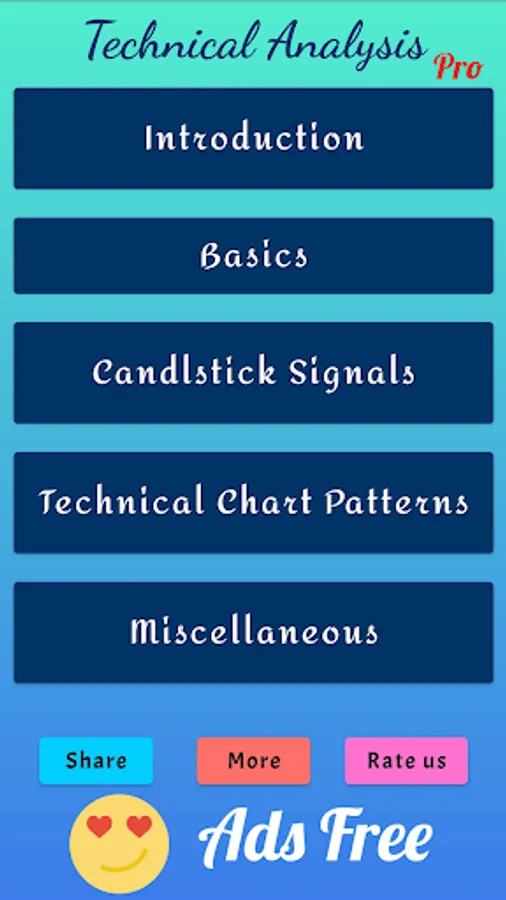 The "Technical analysis Pro" app contains most profitable candlestick signals and technical chart patterns. You can use the contain in this app to make investment decisions on the basis of technical indicators available in the app.