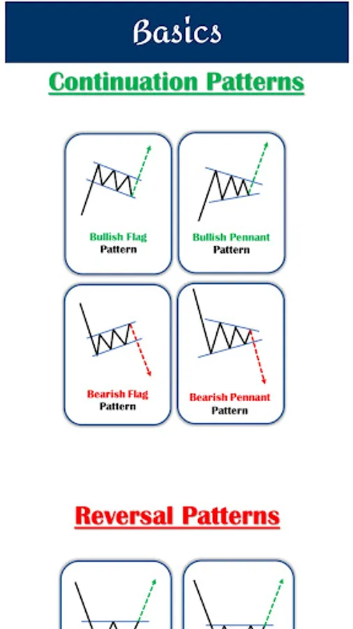 The graphical formation of a these chart patterns makes reversals immediately visible if analysis doe accurately. In this app we have covered the most important technical chart patterns.