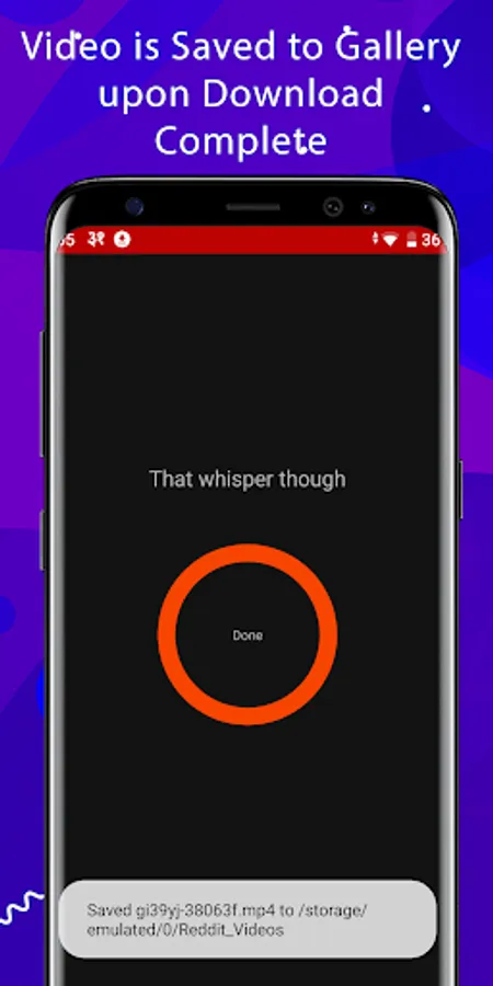 Video Downloader with audio for Reddit first fetches the video URL and then process it. After processing the reddit video url the app start to download the video with audio in HD. The download progress of the video is shown. after the video downloader completes downloading the video , the video is then saved to the Gallery for offline view.