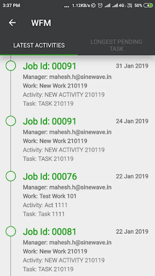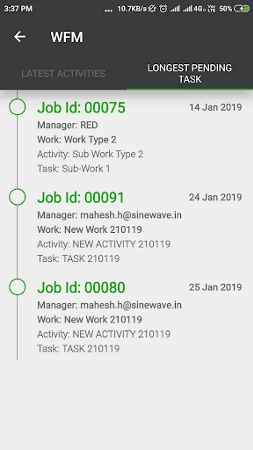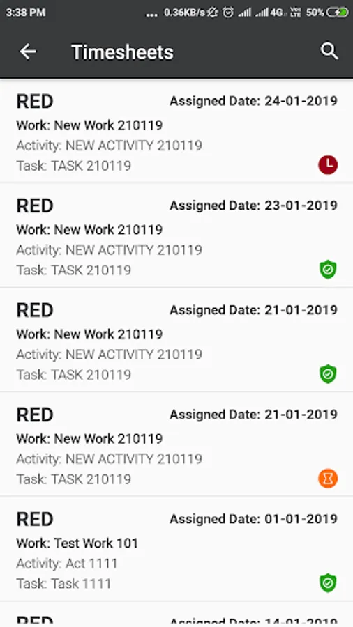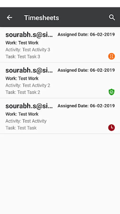 2)A Time Sheet Activity Show list of all task and also some details of all task i.e. Pending, Running, Done.