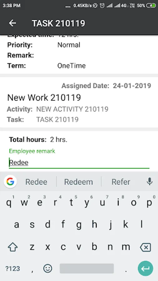 3) Employee can also check the details of tasks present and Can updated the details like Employee Remark, Time Spent etc