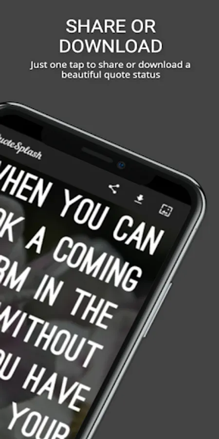 QuoteSplash generates famous vertical picture quotes for social media - Instagram post, WhatsApp status, and wallpapers to fill your mobile screen with beautiful fonts and lets you customize them. Every status quotes generated in high quality full screen portrait and with unique beautiful background images. QuoteSplash has a huge collection of famous motivational, wisdom, inspirational, friendship quotes so that it is guaranteed that you will get a fresh new quote every time you swipe.