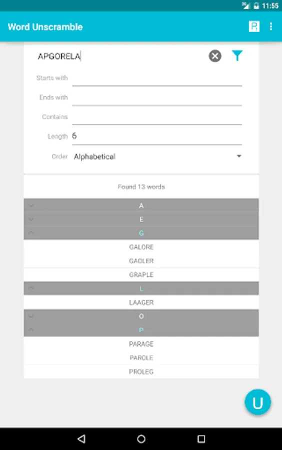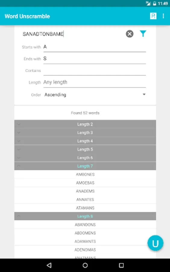 This app quickly finds all possible English words formed by the letters of an unscrambled word. It can also be used to find anagrams of various lengths. Calculate Scrabble & other game points for the words you have unscrambled.