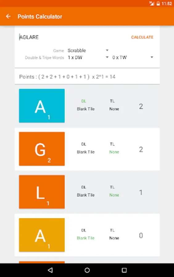 ◦ Calculate game points for the words (Scrabble, Words With Friends or Word Feud)