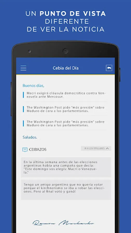 Facing the media blockade faced by Venezuelan society by the national government, La Ceiba is a newsletter of Mayor Ramon Muchacho, where every morning sends a summary of the most important news of national and international events; in addition to their opinion and analysis on issues of relevance today.