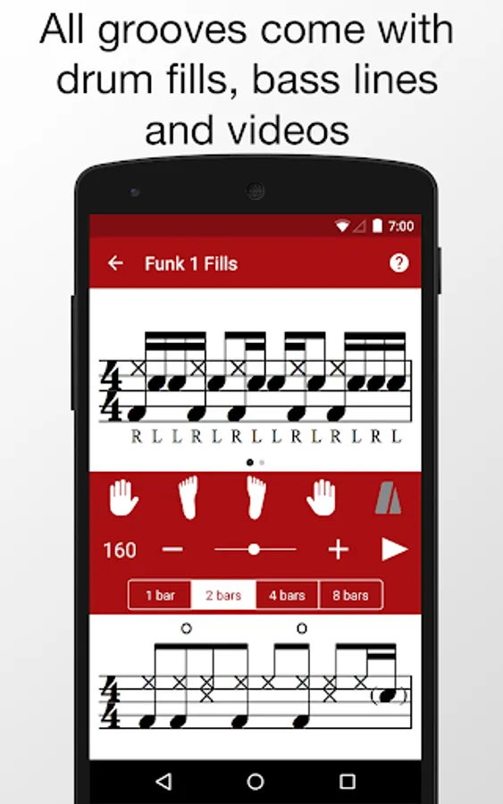 - High quality video performance by the author of the app, established and world renowned drummer, Ferenc Nemeth.