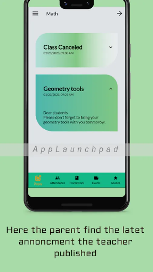 This app aims to enhance the communication between teachers and parents so they are updated about their children progress at school.