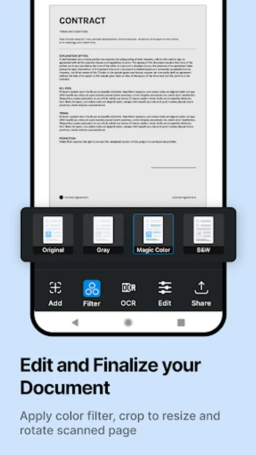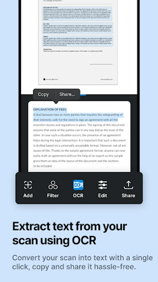 Upgrade your scanning capabilities by subscribing to our premium features. Our subscription service works seamlessly across devices. With a subscription, you can combine multiple scans into one document, extract text from scans using OCR, Sign, stamp & Edit documents whenever and wherever, and back up your scans on your device.