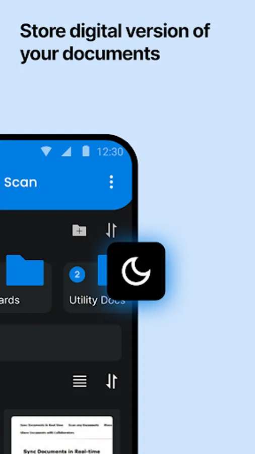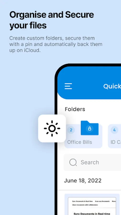 • Organize your documents in folders and subfolders with the Document scanning app.