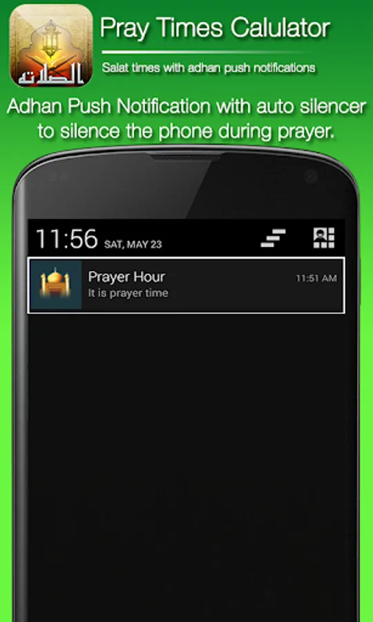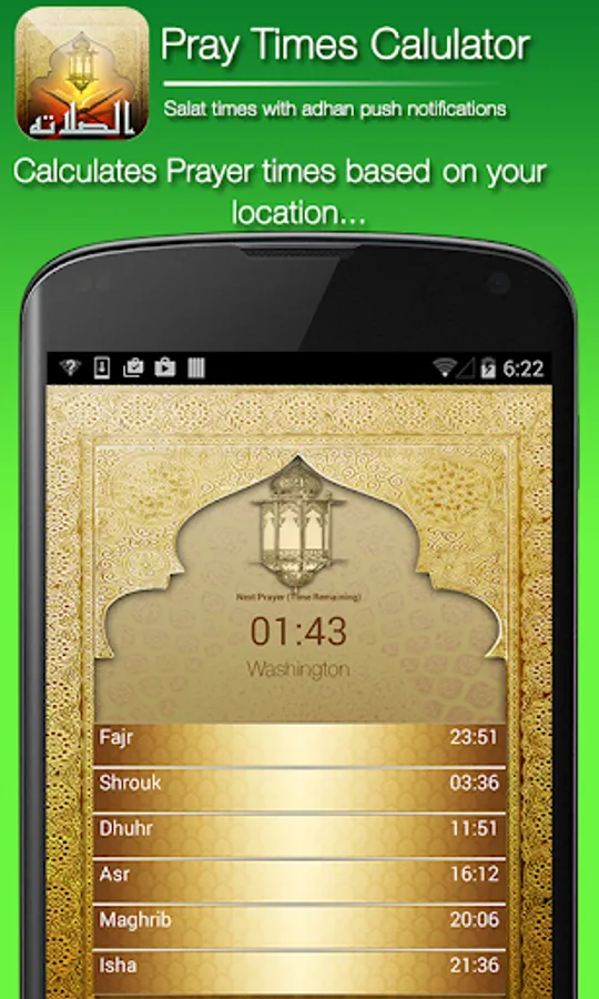 Prayer times calculator is a smart phone app. This app calculates the Prayer times based on the location you select and automatically notifies you for the prayer ( salat ). This app will notify for the prayer time with push notification and adhan in background. Additionally you can select auto silent mode to put the phone in silent during your prayer. The prayer or salat times are calculated based on mazhab and calculation method you select. so this app is useful for any sect of Muslims.