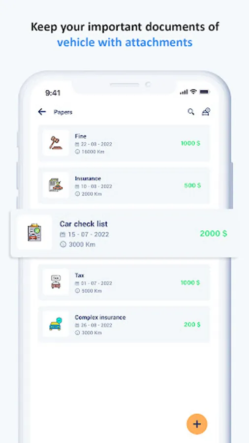 - Keep your all vehicle documents at once place likes Car RC Book, Service Bill, Insurance Policy Papers, Driver License and many more.