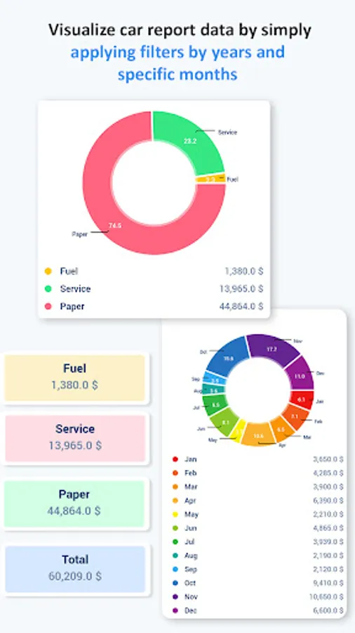 - See the reports of how costs grow from year to year then put all the information in this service log and see the graphics. Taxes, fines, insurance
