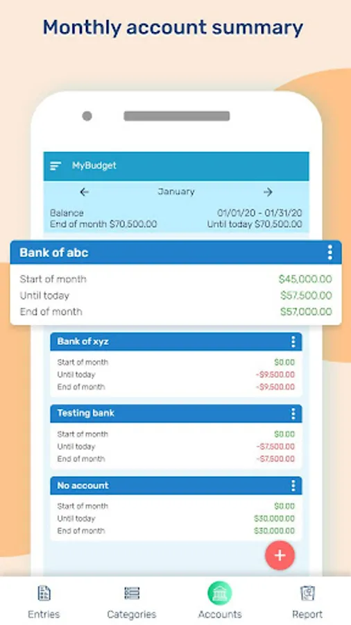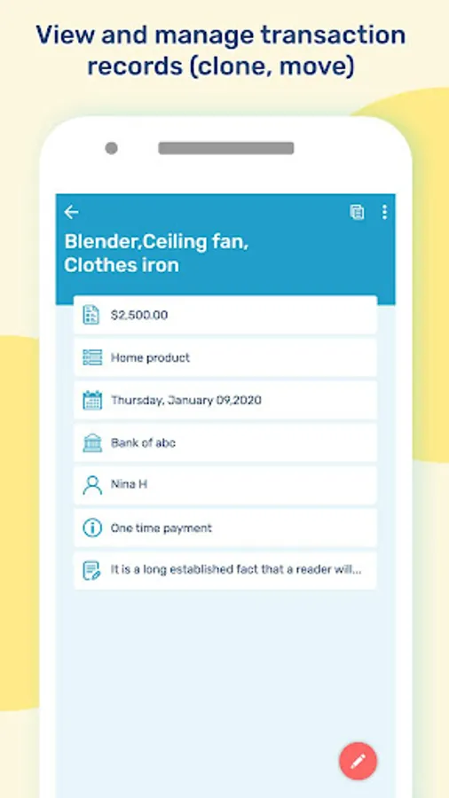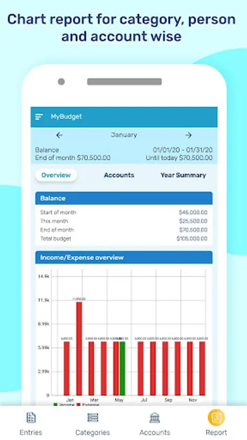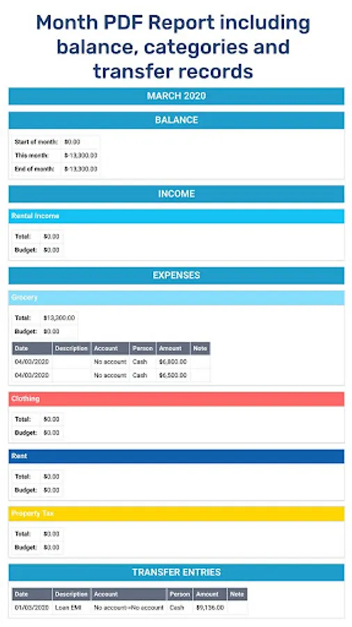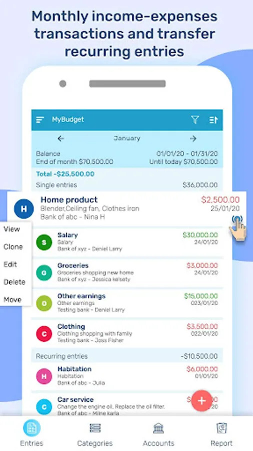 * Manage multiple accounts and person’s transactions entries using this best budget manager feature.