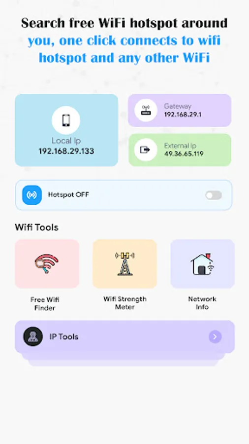 Open WiFi Finder & Connect app search free WiFi hotspot around you, one click connects to wifi hotspot and any other WiFi.