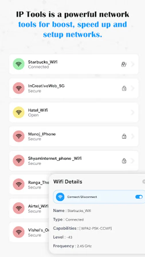 - IP Tools: WiFi Analyzer is a powerful network tools for boost, speed up and setup networks.