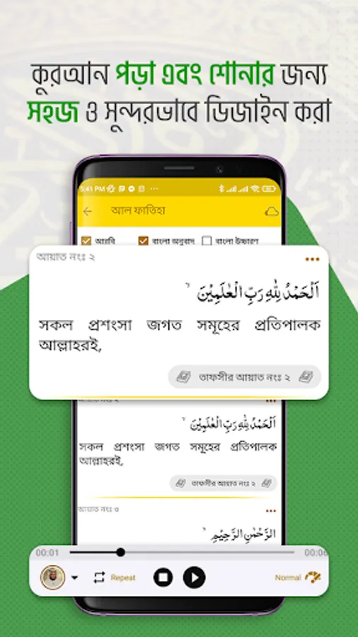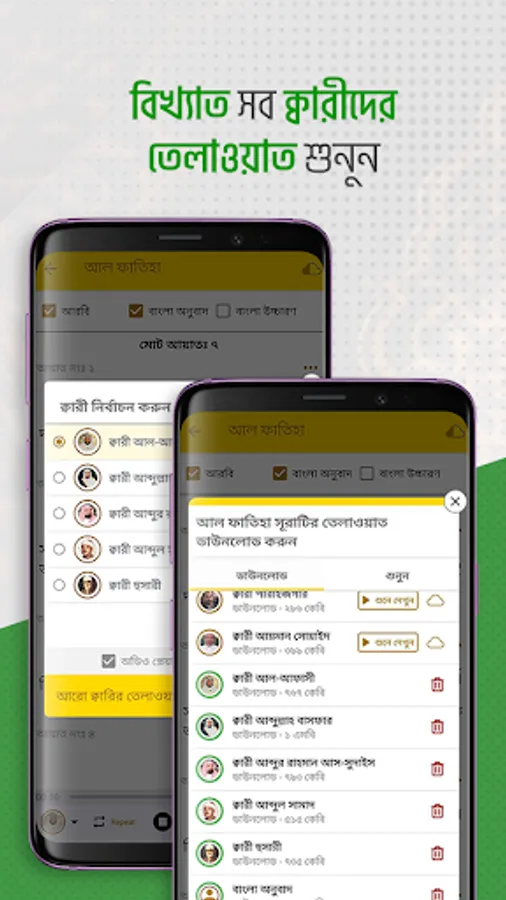 Al-Quran audio in Arabic (17 famous Qari) with Bengali meaning.