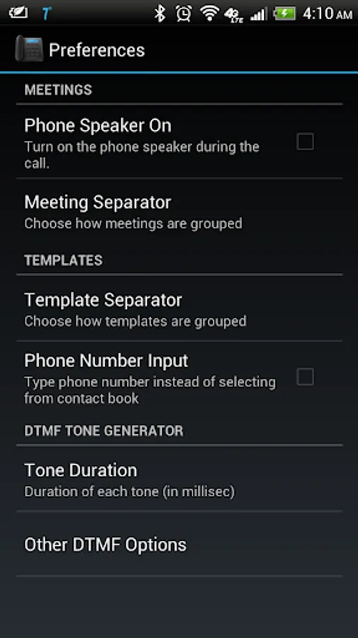 • Generate DTMF tones instead of dialing over the phone (Long press any meeting and press Tones).