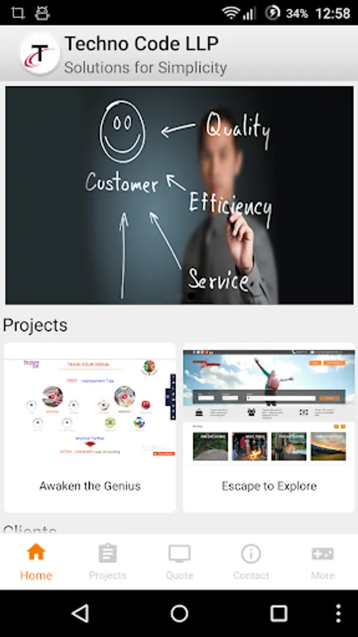 1. Sign in as Guest: View our projects, check out our clientele and request a quote to avail any sort of digital service with ease through the application. You can also contact on us peronally through our contact details from the application.