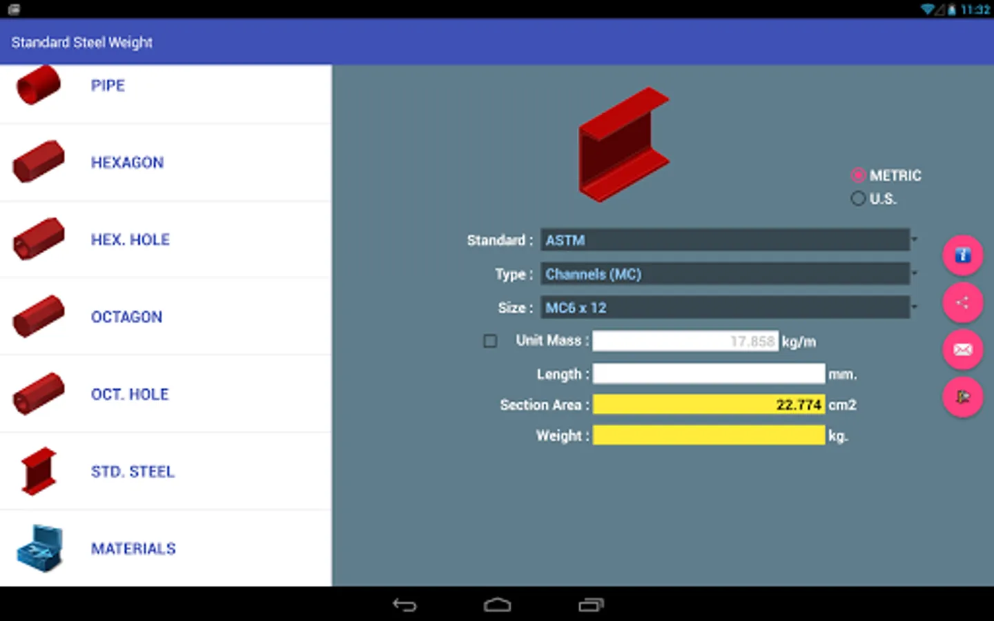Program to calculate the weight. For those who want to calculate the weight of the plate, pipe and rod by many materials. It have material more than 160 types.